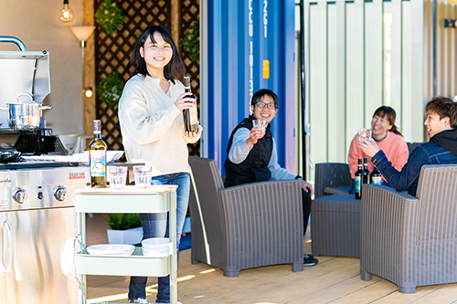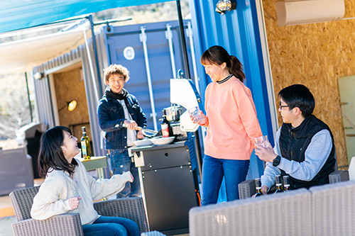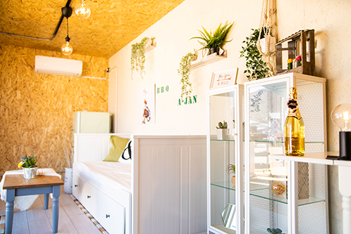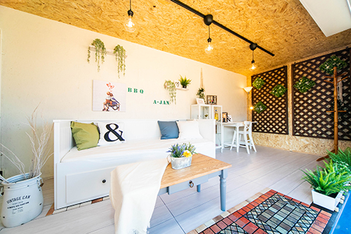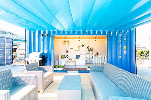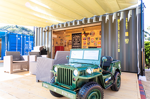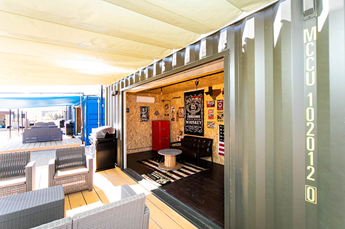 [A-JAN]の自慢は、コンセプトにあわせてインテリアにこだわった3つコンテナルーム。一つひとつ、全く違う雰囲気なので、気分やお好みに応じてお選びいただけます。さらに、各コンテナルームには、専用のテラスと70㎡のキャンプスペースを確保。おしゃれなプライベート空間でBBQをはじめとした自由な時間をお過ごしください。