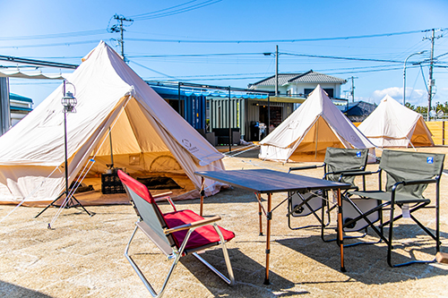 このプライベート空間の使い方は自由。愉しみ方も自由。朝まで過ごすキャンプも、日帰りデイキャンプも、手ぶらできたって大丈夫。おしゃれなインテリアは写真映えすること間違いなし。何度でも訪れたくなる、そんなキャンプスペースになってほしいと願っています。